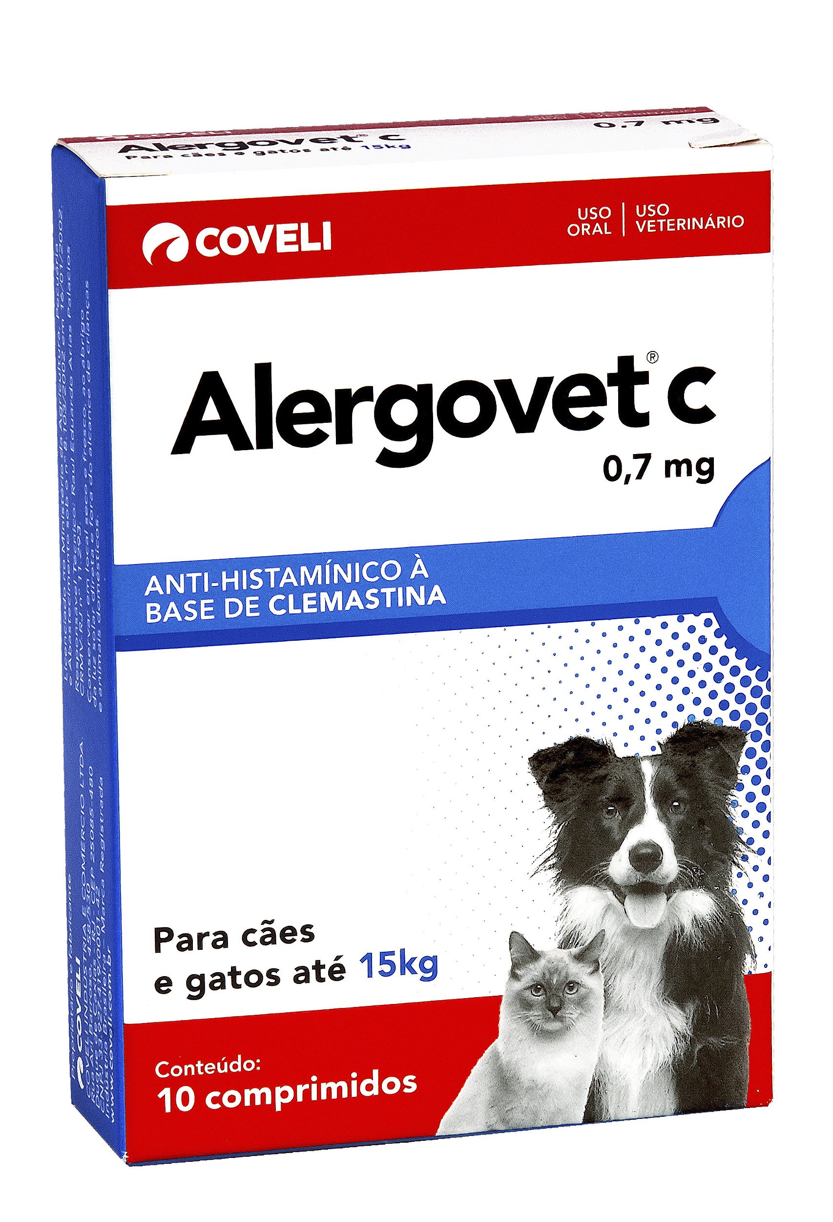 O Alergovet C 0,7 mg, da Coveli, é o único antialérgico veterinário à base de clemastina indicado para cães e gatos com até 15 kg que sofrem com prurido, urticária, dermatite alérgica ou reações a picadas de insetos. Sua fórmula de ação prolongada e comprovada, combinada com segurança mesmo em tratamentos contínuos, torna o Alergovet C a escolha recomendada por veterinários.