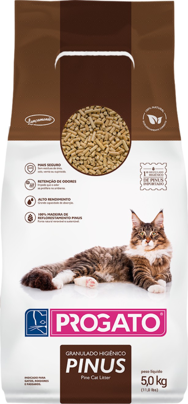 O Granulado Higiênico Progato Pinus é um revolucionário sistema de higiene produzido a partir do pinheiro, limpo e seco, 100% natural. É um produto homogêneo e extremamente absorvente, características únicas que surgem do processo de fabricação que se realiza à altas temperaturas.