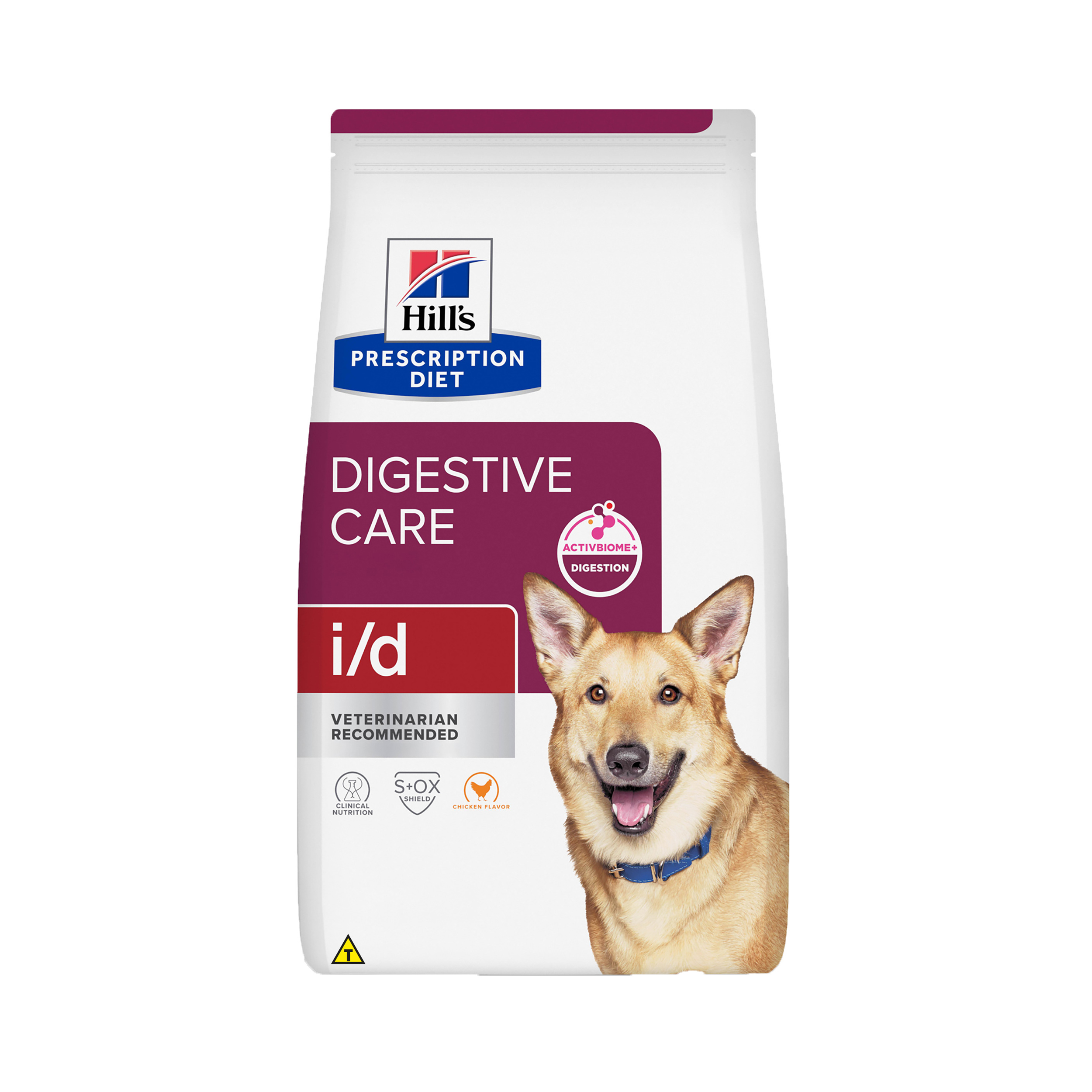 Selecione o tamanho ideal (3,85kg ou 7,98kg) e compre agora a Hill's i/d para restabelecer a saúde do seu cão!