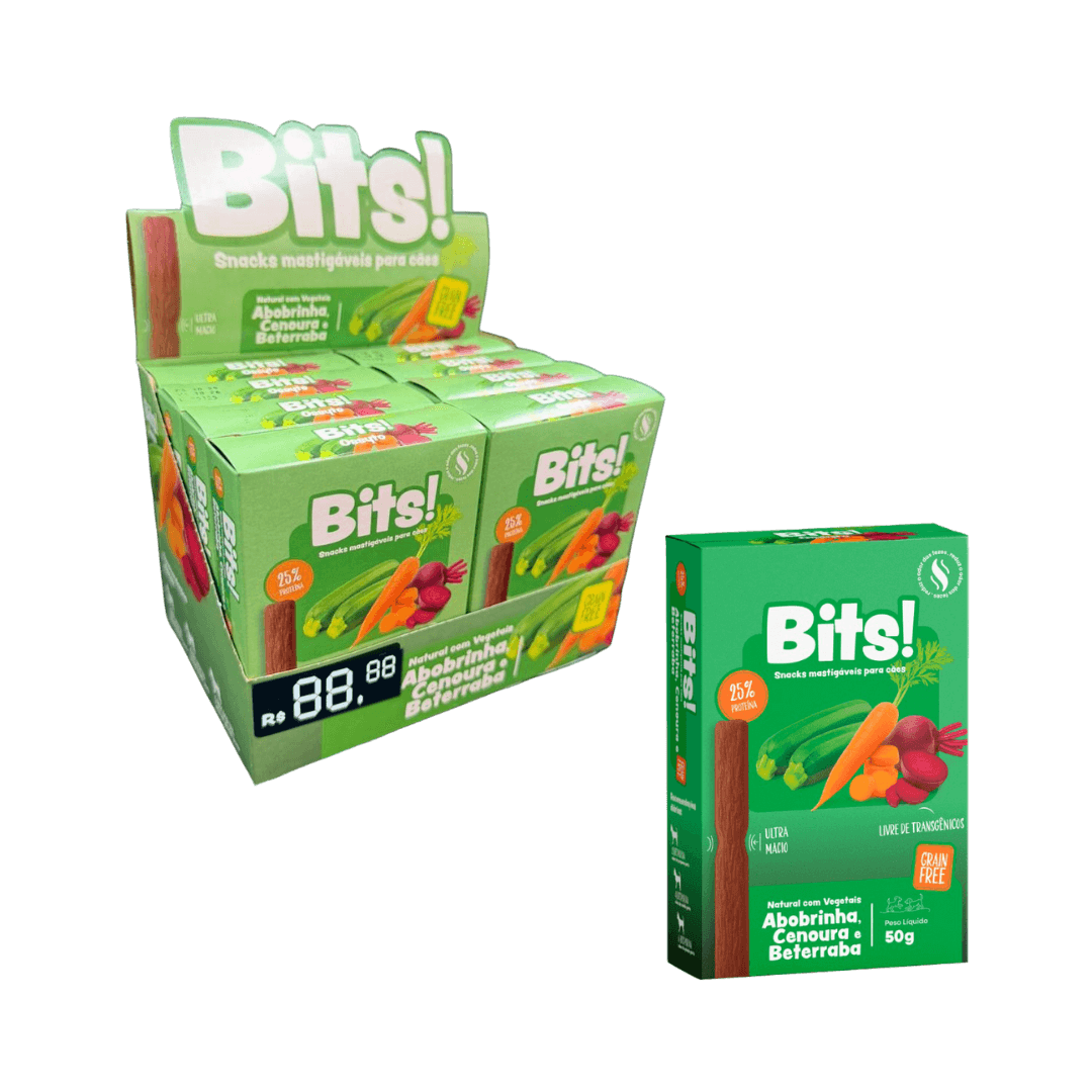 O Snack Bits! Abobrinha, Cenoura e Beterraba é a escolha de autoridade para tutores que priorizam o bem-estar e a saúde preventiva. Desenvolvido pelo Pethy Group, este petisco mastigável une o sabor irresistível dos vegetais a uma textura que os cães adoram. Totalmente focado em uma dieta equilibrada, ele é livre de ingredientes de origem animal, tornando-se uma opção leve, nutritiva e perfeita para momentos de carinho ou sessões de adestramento positivo.