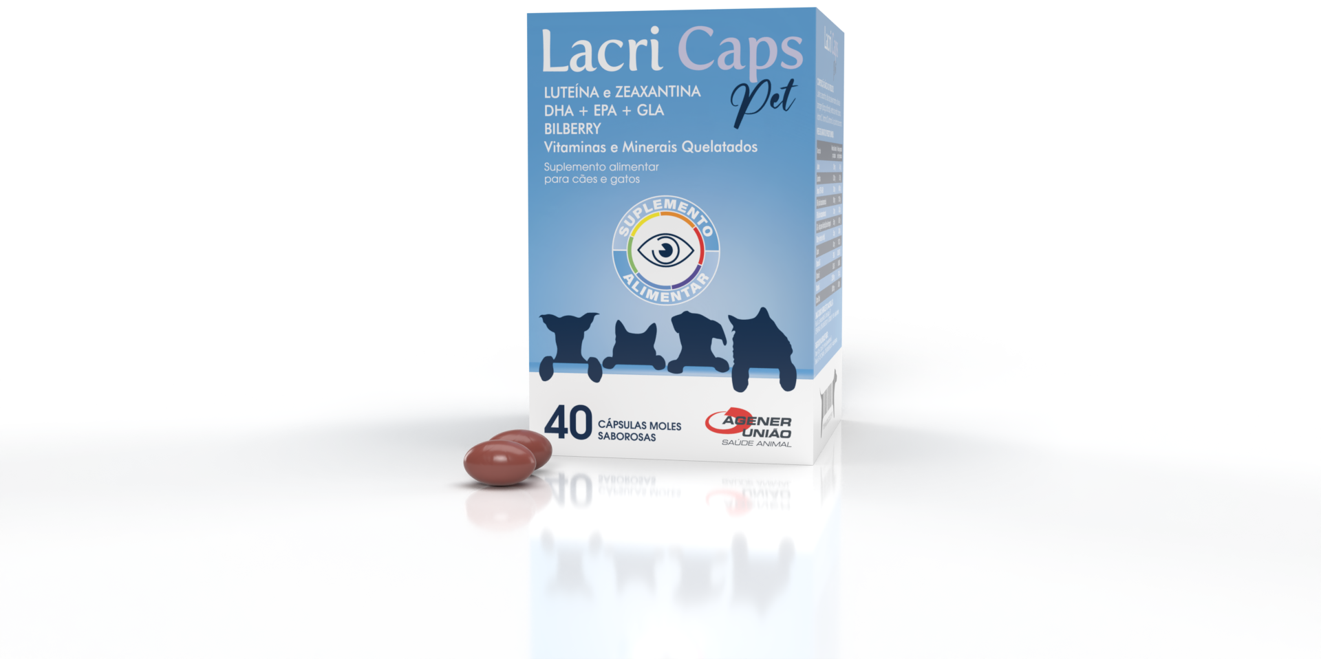 O Lacri Caps Pet® da Agener União é um suplemento alimentar de alta performance, desenvolvido especificamente para o suporte nutricional da saúde ocular de cães e gatos. Sua fórmula exclusiva combina Mirtilo (antioxidante), Ômega 3 (EPA/DHA), Vitaminas A, C, E e Minerais, sendo o principal coadjuvante indicado por veterinários para animais com Ceratoconjuntivite Seca (CCS) ou "Olho Seco".